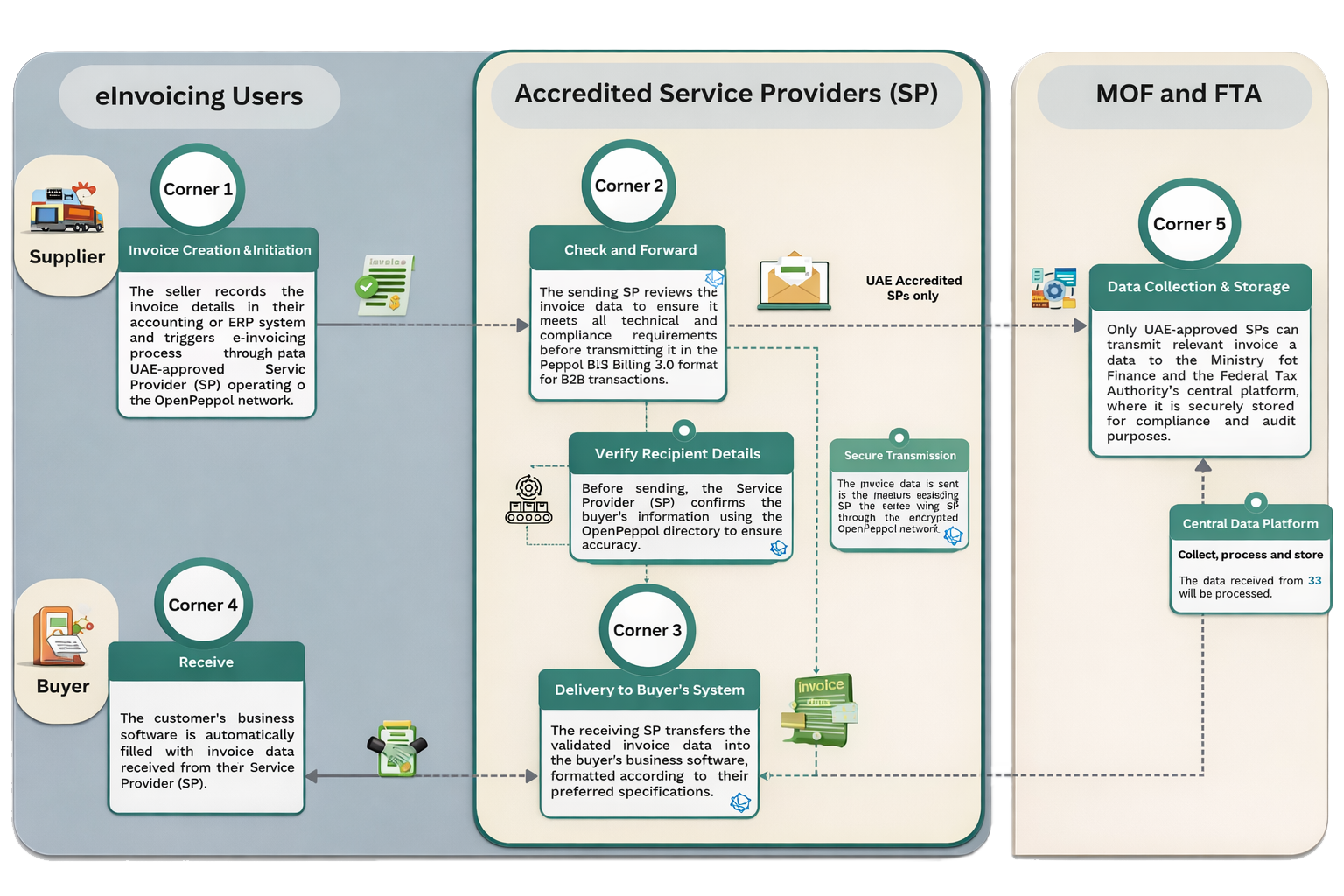 Certified for UAE B2B and B2G invoicing networks, including Peppol and FTA exchange mandates.